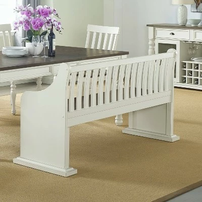 Classic farmhouse styling is updated for today’s home with the Joanna High-Back Bench. The schoolhouse styling is reminiscent of days gone by and provides seating for up to three adults. Versatile enough to use with the Joanna Dining Table for extra seating or as a hallway bench. Sturdily constructed from hardwood solids and acacia veneers with a two tone dark oak/ivory finish. Your purchase includes one high-back bench.