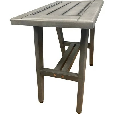 MidCentury 18in Wide Teak Transfer Bench for Showers. With dimensions of 18 inches in length, 14 inches in depth, and 18 inches in height. This bathroom seat is sustainably sourced, as a family owned company, we have manufactured our teak products from certified legal teak from the island of Java in Indonesia for over 10 years. This piece features our Antique Gray finish, which is mostly gray, with the yellows and browns from the teak showing through.
