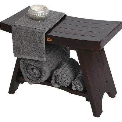 24" Serenity DT98 Wide Teak Wood Shower Bench with Shelf – DecoTeak