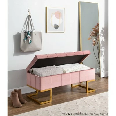 - Features: Storage, Hinged Lid, Tufted, Lift Top