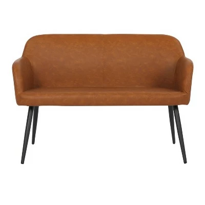 Fall in love with the industrial style and comfort of the Daniella High Back Bench by LumiSource. The plush seat and backrest is upholstered in beautiful faux leather and features stylish metal legs. This versitile bench can be used in an entryway, in the dining room, in the living room, or at the foot of the bed.