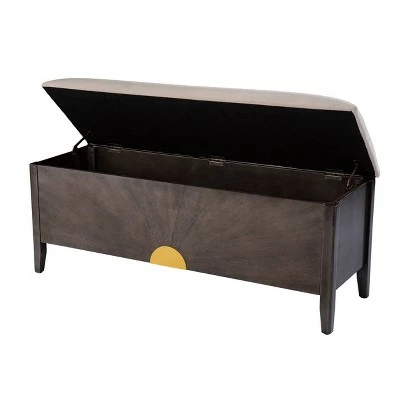 Create convenient storage in your small space with the Aiden Lane Latheg 48.25″ Storage Bench. A unique sunburst pattern decorates the frame, while an upholstered seat opens to reveal a spacious hidden storage compartment. Built with functionality in mind, this modern bench works alongside your dining table or in your small space entryway. Upgrade your living room or hallway design when you bring home this contemporary bench with storage.