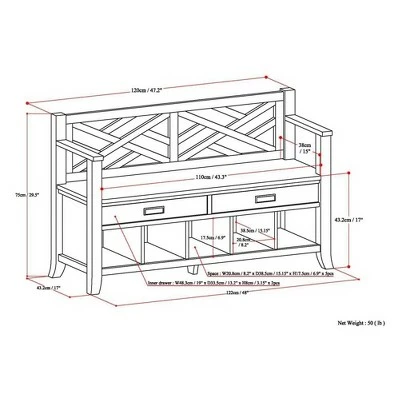 - DIMENSIONS: 17″d x 48″w x 29.5″ h