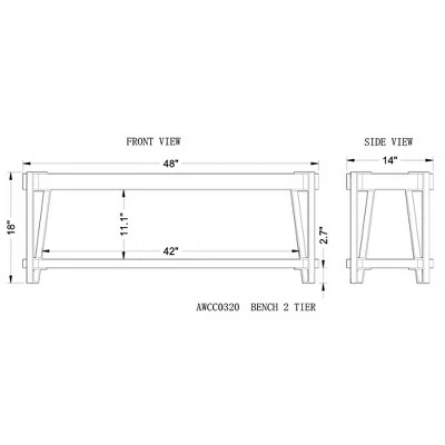 - Dimensions: 48″ W x 15″ D x 19″ H