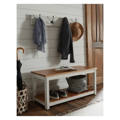 Savannah collection offers modern cottage styling; with its wood top and white painted legs it offers fresh style to your living space. Savannah includes end tables, console tables and media/storage pieces. You can design your coastal, cottage, or farmhouse living room in your home. The roomy bench with slat shelf is perfect for your entryway, mudroom or bedroom.