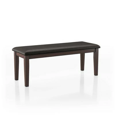 Offer comfortable seating for guests and add a sophisticated look for your dining room with this dining bench with a dark cherry finish. The faux leather upholstery on the dining bench features a foam fill for added comfort. Features like semi-firm cushion are a sure way to have long conversations around the table or any area for hours.