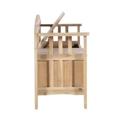 Update your home with a rustic look with the Aria Storage Bench. Perfect for adding to an entryway, hall or mud room, the bench features a split seat design. Storage beneath the seat is ideal for keeping coats, shoes and bags hidden. The natural washed finish allows the piece to blend seamlessly into any home.