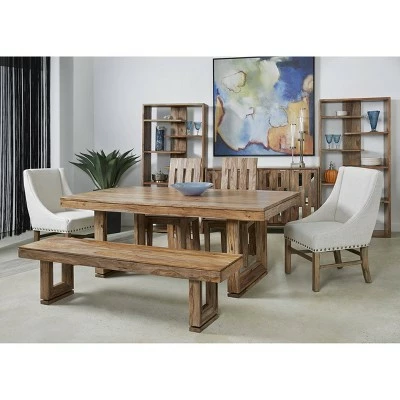 While our Brownstone dining bench pairs beautifully with its matching dining table it can be easily be used in other areas of the home. Constructed of solid sheesham and finished in a nut brown that highlights the richness and natural beauty of the wood grain. The picture frame leg detailing adds sophistication and class to the simple design, add in the routing and the bench top and legs seem to float above the floor. Purchase one to go with your dining table and an extra for your mudroom, game room or to place underneath your favorite window.