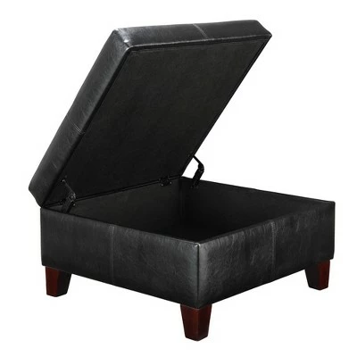 The Bert Square Storage Ottoman coordinates with any room in your home and provides convenience to your living space! Its padded top folds open to reveal ample space for pillows, blankets, magazines and everything else you want out of sight. It can also be used for additional seating for those unexpected guests or as a simple footrest at the end of the day. The Bert Square Storage ottoman is made of faux leather with decorative stitching and sturdy wood feet. Minimal assembly is required.