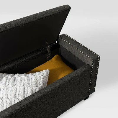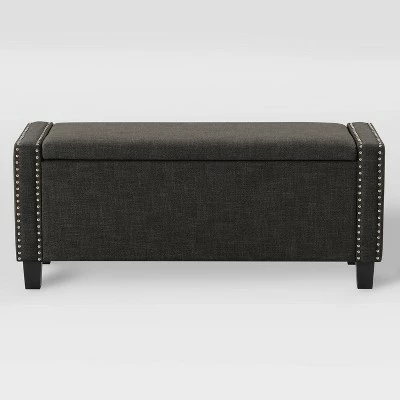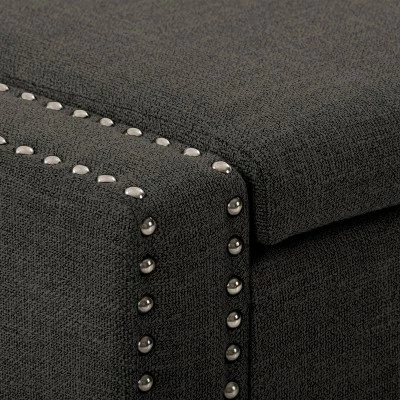 - Features: Padded Seat, Nailhead Trim, Storage, Hinged Lid