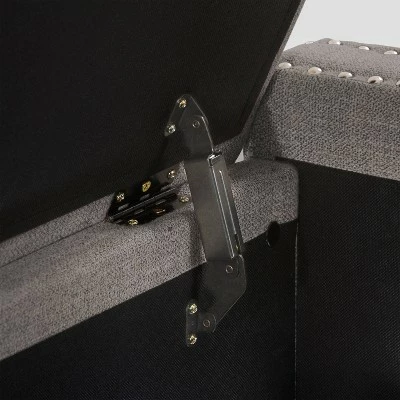 - Features: Padded Seat, Nailhead Trim, Storage, Hinged Lid
