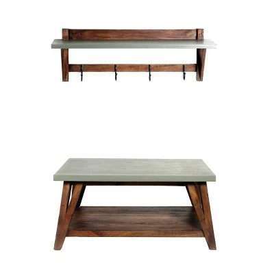 Alaterre Furniture’s Brookside Entryway Coat Hook and Bench decorates your living space with this new innovative construction. Modern, industrial concrete coated table top with solid wood base and shelf will offer a fresh new look to your living room. We see this collection in a modern city loft or a transitional living room that needs just a pop of updated style. Coordinates with the Brookside Collection that includes end tables, coffee tables, console/media tables, dining/entryway bench, stool and entryway coat hook.
