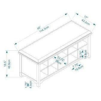 The Cape Anne Storage Bench is perfect for adding storage and seating to an entry or hallway. Ten bottom storage cubes are perfect for storing and organizing shoes and other small items. Finished in a dark walnut, the top is upholstered in a dark brown PU fabric. The simple, clean lined design will easily complement a variety of decor styles.