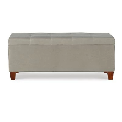 The Carmen Shoe Storage Ottoman is perfect for placing in a large closet, entry or at the foot of a bed. The beautiful upholstery allows this piece to easily complement any décor style and color scheme. The top tufting details adds an eye-catching accent to the piece. Once opened, ample interior storage space is revealed. Side pockets are perfect for storing a multitude of shoes, while the open center provides space for other items. A plush cushioned top makes this piece perfect for sitting.