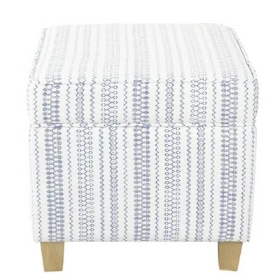 The classic square ottoman is complemented by wood legs. The square storage ottoman adds functional style to any space. Use it to store pillows or throws in a bedroom, hide toys or controllers in the family room, or conceal accessories in an entryway. Pair two ottomans together for added impact, at the base of your bed or in the living room. The lift-off lid enables easy access to storage within. No assembly required; spot clean as needed. This ottoman can support up to 250 pounds.