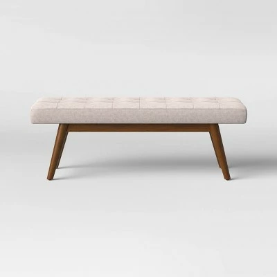 Add warm, welcoming vibes to your entryway or living room with the Copan Mid-Century Bench from Project 62™. This charming upholstered bench features a pretty padded seat with attractive button-tufted detail, resting on a rubberwood frame with slightly flared legs for an attractive modern shape. Great for placing in your entryway and topping with a decorative throw or pillow, it can be used as a place to rest as you slip your shoes on and off while also adding a beautiful decorative accent to your home.