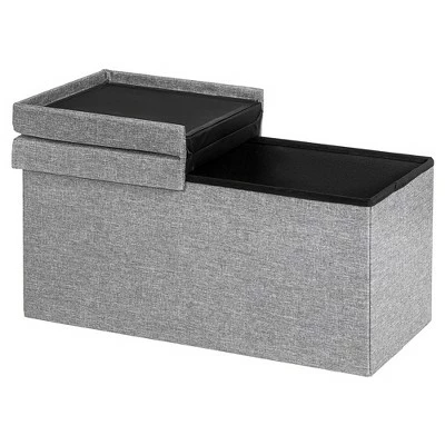 Combining practicality and aesthetics, this foldable storage bench is not only an ideal storage solution, but also a perfect complement to the living room, bedroom and entryway! . The whole frame is constructed of high quality MDF, which is sturdy enough to bear up to 660lbs. Soft fabric covering and thick padding provide a great sitting experience. Roomy interior storage space can meet the needs of storing clothes, blankets, shoes and other daily necessities. It’s also worth mentioning that the flip top allows you to easily take out and store items without removing the entire lid. Equipped with detailed instructions, the storage ottoman can be assembled quickly.. Specification: Color: Light GreyDark Grey. Material: Oxford Fabric + MDF + Sponge. Overall Dimension: 30” x 15” x 15” (L x W x H) . Inner Dimension: 28.5” x 13.5” x 13” (L x W x H) . Weight Capacity: 350 lbs. Net Weight: 12.5 lbs. Package includes: . 1 x Foldable Storage Bench. 1 x Instruction.