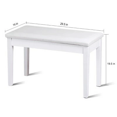 This is our high quality and stylish piano bench which offers a comfortable place for you to practice the piano. Constructed with sturdy solid wood, the piano bench can support two persons safely. Covered with PU leather and padded with high-resilience sponge, you will feel more enjoyable and relaxed. Equipped with a big storage compartment under the seat that provides specious space for holding sheet music and books. What’s more, it has anti-slip feet pads under wood legs, protecting your floor from being scratched. Don’t hesitate to buy one! Specification: Color: White. Material: PU leather and solid wood. Overall size: 29.5”x14”x19.5” (LxWxH). Weight capacity: about 360lbs. Net weight: about 14.6 lbs. Package includes:. 1xPiano Bench.