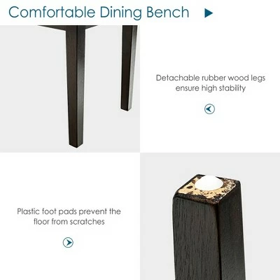 - Sturdy & Durable Frame: Made of premium solid wood, the frame of this dining bench is sturdy enough and not easy to deform. Rubber wood legs ensure extra stability. Each part is connected with anti-rust accessories and the bench can provide large weight capacity for you.