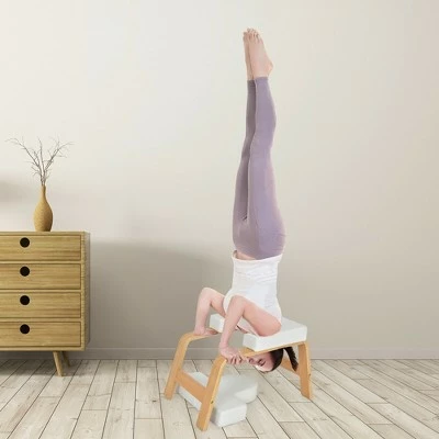 Our yoga inversion bench will be your best solution to perform a headstand with safety and ease! The bench consists of a sturdy wood frame and soft PU cushion padded with high-density sponge, providing firm support and gentle comfort for you to get upside down easily. And the T-shaped pad is removable. It can be used to protect your head or serve as a yoga block. Therefore, this yoga prop can not only help you to do upside down, but also assist with other yoga postures and get your full body exercised. More importantly, insisting on using this yoga bench to exercise can help you relieve fatigue, enhance core strength and maintain a fine figure. Therefore, let’s get started from now on! . Specification: Color: White. Material: Beech Wood, Birch Wood, PU. Overall Dimension: 24” x 15” x 15.5” . Pad Size: 19” x 16.5” x 3” . Net Weight: 11 lbs. Weight Capacity: 440 lbs. Package Includes: . 1 x Yoga Headstand Bench. 1 x User’s Manual.