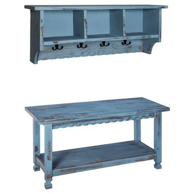 Country cottage collection will be a charming addition to your home’s decor. Country Cottage has a weathered finish; each piece is uniquely yours. With its detailed dental work, square legs and wood construction, each piece will be unique in your living space. Distressed finish coat hook and bench set offers farmhouse style and functional design. Coat hook has three cubbies; 8 sturdy hanging hooks for jackets and more.