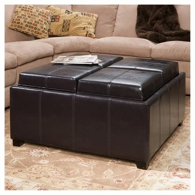 The Dayton Tray Top Ottoman has clean lines of rich leather loaded with style. The contemporary design relaxes with functionality as each section becomes a signature tray for a variety of uses.