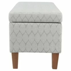 Keep your storage solutions functional and comfortable with this Double Storage Ottoman from Room Essentialsâ„¢. Made with a wooden frame, this rectangle ottoman features a padded seat in a textured gray finish to add striking appeal to your home. This ottoman will match just about any existing decor, and it makes a great decorative accent anywhere you place it. Use it in the living room as a footrest and a spot to store blankets and pillows, or keep it in your entryway as a comfortable place to sit while you slip on your shoes.