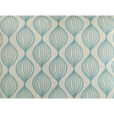 - Viscose-blend fabric decorated with a unique ogee geometric design in soft blue and cream