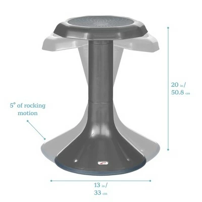 ACE (Active Core Engagement) Stools supports the body’s natural need for movement. Active seating that rock, swivel, and tilt encourage good posture, core strength, and alertness. Constant small movements increase blood flow to the body and brain aiding concentration. Align the spine, activate the muscles, and add movement throughout the day while making seated tasks more engaging. Dynamic seating can help sustain attention and focus by creating an outlet for fidgeting and wiggles; perfect for those who are restless and provides continuous small movement without distracting others nearby. It is ideal for children and adults who have ADHD, ASD, or sensory sensitivities. The ACE Stool features a non-slip seat and a convex base that lets you rock 360° and helps keep you upright. Rated GREENGUARD [GOLD] Certified for healthier indoor air and CPSIA lead and phthalate compliant for safety. ACE Stools meet/exceed the combined standards of both the ANSI and BIFMA for safety, durability, and structural adequacy in business and institutional furniture. At ECR4Kids, we’re committed to safety, testing and regulatory compliance to ensure our products meet or exceed industry standards. You and your kids deserve the absolute best for a brighter way to play, share, learn and grow. | 12.8″W x 15.7″H | 21.7″H | SitWell Adjustable Stool | Sitwell Adjustable Stool | Rubberized Seat | Comes fully assembled | Freedom to Move | 11⁰ of rocking motion | Adjustable Height | Easily adjust height with a push of a button | Always keep feet on ground to help maintain balance | Helps promote proper posture + strengthens core | Non-Slip, convex base keeps you upright |
