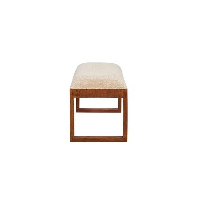 Our Faria bench adds warmth and function to your living room, bedroom or entryway. A Moroccan Aztec pattern of beige and white, a soft, comfortable foam cushioned seat, and the modern natural wood finish U-legs make this an accent piece to breathe life into any style or decor. This bench provides not only functionality but also a focal point of subtle urban style.