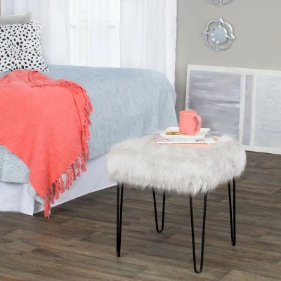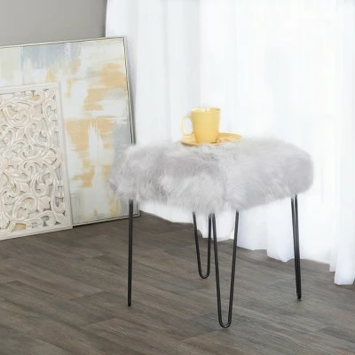 Faux Fur Gray Stool – HomePop