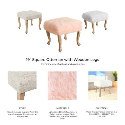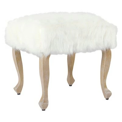 Faux Fur Ottoman with Wood Legs – HomePop White