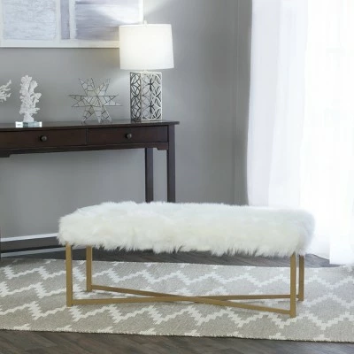Go for glamour with this long rectangle bench with metal base and upholstered fabric top. Offered in a range of fabrics, including white faux fur and lush velvets, this rectangle bench will instantly add unmistakable style to any room in your home. Use this fun yet functional bench as an entryway bench, an end of bed bench or as an ottoman bench in a living room for extra seating. Make a bold statement that is cozy and soft to the touch. Easy to assemble and maintain with spot cleaning as needed.