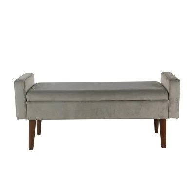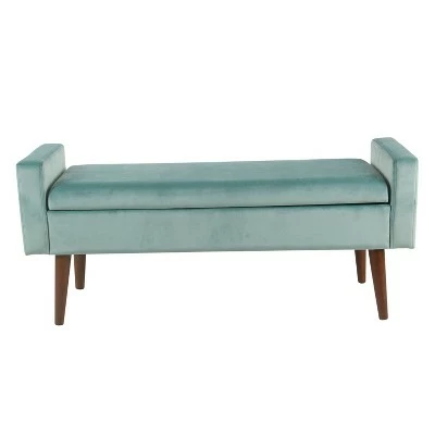 The Fulton Storage Bench is elegant in its simplicity. With sleek lines and slightly tapered legs, the Fulton offers modern mid-century style with the added function of storage. Its hinged lid easily lifts to conceal controllers, blankets, pillows and more. Covered in a rich fabric with a very soft hand, this upholstered storage bench will add dramatic flair to any bedroom, living room or entry. This elegant bench is easy to assemble and maintain with spot cleaning as needed.