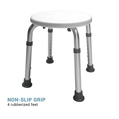 Slipping in the shower is incredibly dangerous. Ensure a safe and relaxing time while bathing with the Lumex Adjustable Round Shower Stool Bath Bench Seat. This supportive shower seat is made to provide assistance to those who are unable to step over the bathtub walls harmlessly. The transfer bench features drainage holes in the spacious, deep seat to help prevent water build-up and maximizes stability while in the shower. This assistance bench includes a reversible, comfortable backrest to allow this chair to be used in any bathroom. Constructed with a rust-resistant aluminum frame, this shower chair can support up to 300 pounds. This shower bench seat can be adjusted to the proper height to avoid lower back pain or instability. Ensure that the top of the seat is just below the knee cap for reliable and comfortable results.Don’t be afraid of endangering yourself and slipping in the bathtub; quickly install the Lumex Adjustable Round Shower Stool Bath Bench Seat in your bathroom today.