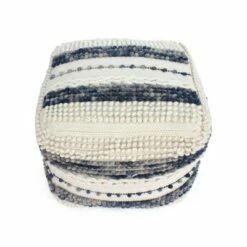 HANDCRAFTED BOHO DESIGN: Our handcrafted poufs are expertly designed and made using a centuries-old method. Any natural variations are not product flaws, but rather, will ensure that your purchase is of a truly one-of-a-kind product. With a tufted striped design in blue and white, this lovely pouf is a perfect accessory for any home.