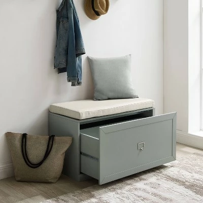 The Harper Entryway Bench offers simple storage at its best. Clean modern lines encase an ample storage drawer, ideal for tucking away shoes clogging up your entryway. Featuring label holder hardware, the storage drawer can be customized with personal labels. The bench also comes with a seat cushion that can be placed on top for a comfortable spot to sit when needed. The Harper Entryway Bench is modular in design and can pair with other items within the collection.