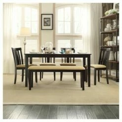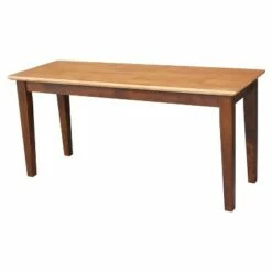 - Wood bench with upholstered pad is great for adding to dining tables or other spaces