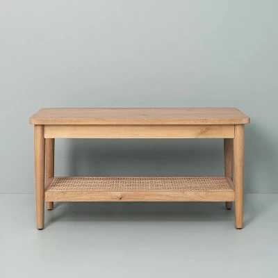 Liven up the look of your home with this Wood & Cane Bench from Hearth & Handâ„¢ with Magnolia. This natural wood bench features a wooden frame and tapered legs, adding a touch of mid-century style to your decor. Whether you’re using this rectangle bench as an accent bench alongside a staircase or in your home office, it brings easy style and space to any room.