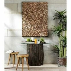 - Unique metal and wood bench lends a warm rustic vibe to your living space