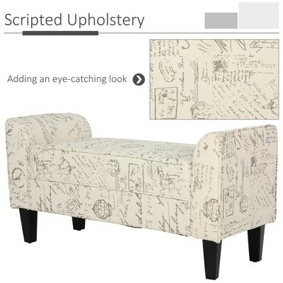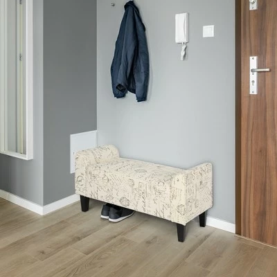 Spice up your interior with this stylish bedroom bench from HomCom, perfect for adding extra seating to any bedroom, living room or entry space. Covered in stylish signature fabric, this upholstered bench has dark wood finished feet and a plush seating area. The straight line frame is bookended by rolled sides, adding an elegant touch to this piece. Use it to enhance your interior decor at home.
