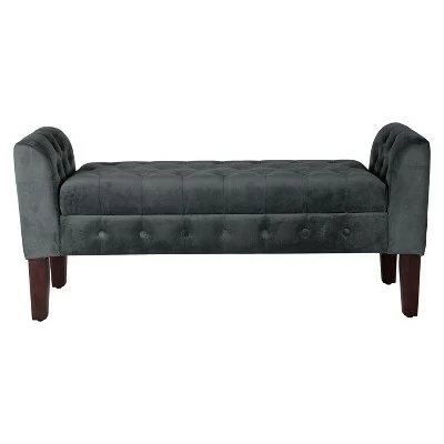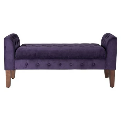 This elegant storage settee features all over button tufting for a luxurious look and feel. Upholstered in a soft and durable premium velvet fabric, this decorative bench has wood legs in a range of rich finishes. The hinged seat opens to reveal storage suitable for spare throws or pillows, books, magazines or toys. Use it as an end of bed bench, as an entryway bench or as extra seating and storage in a living room. This velvet bench is available in many rich colors and is part of a broader collection including accent chairs, tufted storage ottomans to match in the same great velvet fabric. Easy to assemble and maintain.
