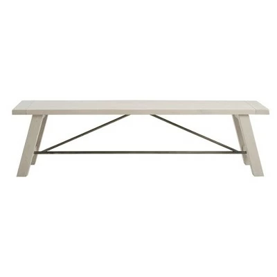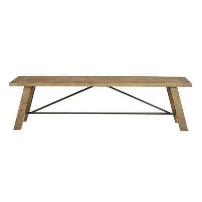 Transform your home into a rustic retreat with the Sonoma Dining Bench. Made from solid reclaimed pine, this rectangular dining bench comfortably seats up to three people and features a weathered finish to give it a more natural appeal. Color variations are natural to pine wood and add to the character of the piece. Metal stretchers in a gunmetal hue provide support, while also adding a bold accent to complement the look. With its simple design and expert craftsmanship, this wood dining bench brings a country-inspired charm to your dining room. Assembly is required.