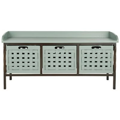 After braving the weather, unpack and unwind on the Isaac wooden storage bench with sturdy Elm wood and MDF seat with a NC Coating finish. Three wood storage bins with cut out handles and fronts that allow you to see where you’ve stowed excess hats, scarves and shopping totes. The sturdy build of this wooden storage bench can hold up to 550 lbs. The Isaac drawer is a great addition to Nautical, Shabby or Transitional style interiors.