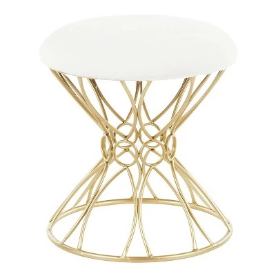 With a stunning silhouette, the Jasmine Vanity Stool by LumiSource offers style and practicality. Resting on a sleek and intricate gold metal base the button-tufted seat is upholstered in a stylish velvet. Use it for extra seating or as a stool for a vanity. Available in your choice of multiplecolor options, you can use this glamorous vanity stool in a variety of spaces.