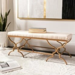 Designed for the modern tastemaker, this stylish rectangular bench is a contemporary classic for the eyes. Its luxurious metalwork features a refined geometric design that is illuminated with a chic gold finish. Its lux lined upholstery ensures it complements any décor. Decorate your living room, bedroom, or hallway with this glam bench to help elevate the elegance in the room. The Juliet Rectangular Bench is available in two colors to best suit your personal tastes and decor.