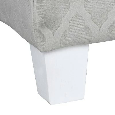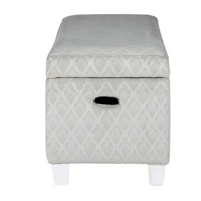 This kids’ storage bench can corral toys, blankets or books while providing kid-sized seating for friends. Covered in light gray geometric pattern, this kids’ bench has a velvety look and feel that is on trend and durable. With a hinged lid top, this kids’ bench provides child-friendly storage that is easy for small hands to open and close. Use in the play room or as a bedroom storage bench to keep the toy collection manageable. Featuring cut out side handles and wood legs in a white finish. Easy to assemble and maintain.