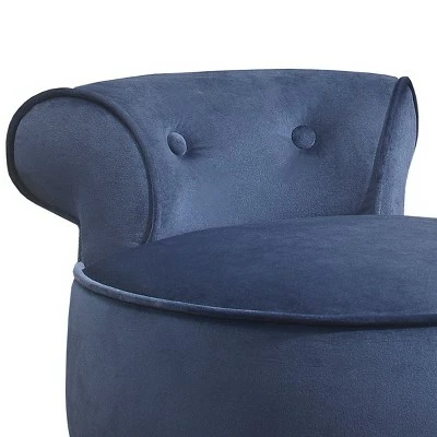 Modern with a touch of class, the Lena vanity stool features an amply padded seat with an ultra-low sleigh decorative back. Its saber legs are made from rubberwood with a Dark Espresso finish. The dazzling blue upholstery is soft yet firm and has a silver nail head trim. This attractive stool nicely doubles as an ottoman or dressing seat. Assembly required.