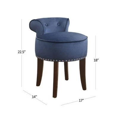 - Product Name: Lena Backless Wood and Upholstered Vanity Stool with Nail Head Detailing