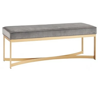 Update your home decor with the sleek style of the Secor Bench. This accent bench features a gray upholstered seat with a gold metal base that creates a chic modern look. Place this bench in your entryway, bedroom, or living room to give your home decor a contemporary touch. No assembly required.